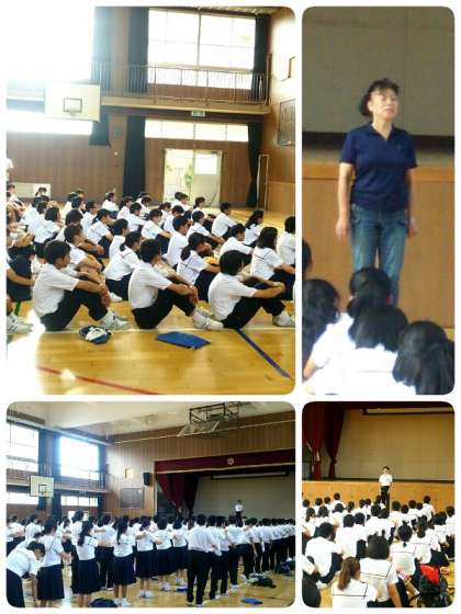 野口先生からは自身の高校受験のことを振り返り、「昔は高校の情報を手に入れる手段が今のようにたくさんはありませんでした。私は友達に誘われてある高校に行くことになりましたが、数学が苦手にも関わらず、数学が厳しい学校を選んでしまったことを後悔しました。」「今は体験入学や学校見学会も多数あるので、是非足を運んで見て来てください。」「懇談で奨学金についての説明会の案内を渡しているので、よく見ておいてください。」などの話がありました。