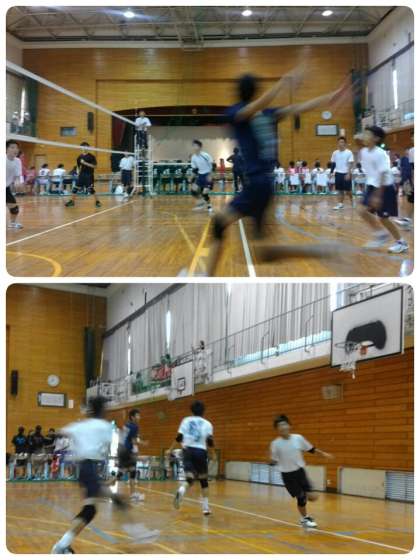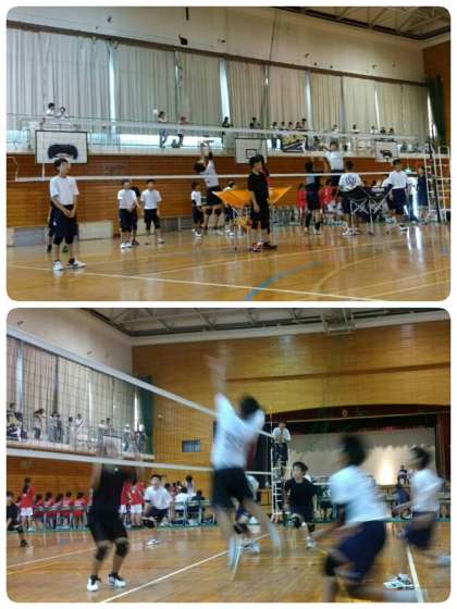 男子バレーボール部は藤井寺中学校に出向いて練習試合です。