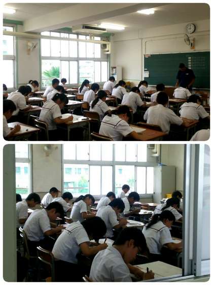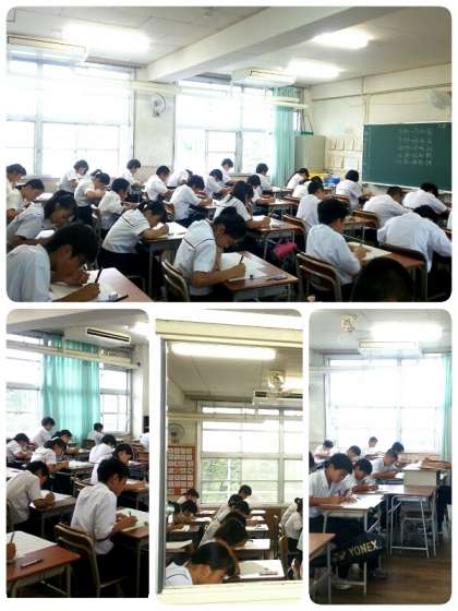 本日3年生は実力テストですが、1・2年生も宿題テストに臨んでいます。