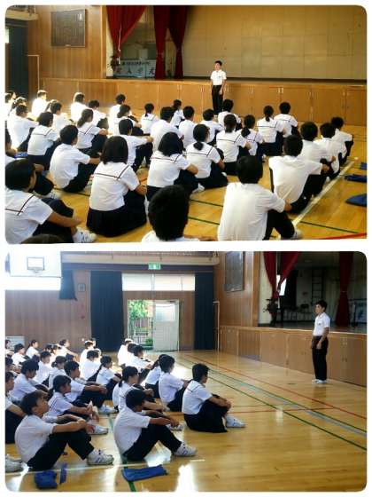 山中先生からは文化祭に向けて、「いま、クラス合唱の練習をしていますが、恥かしいいのか自信がないのか、まだ一生懸命歌えていない人がいるように思います。2年生の全体合唱ではとても良い合唱ができていたので期待しています。」という話がありました。