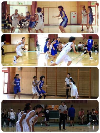 3回戦を勝ちきった摂陽中学校。続く4回戦は白色のユニフォームを身にまとい、市内でも強豪校のひとつである南港北中学校と対戦しましたが、残念ながら26対77で敗れました。