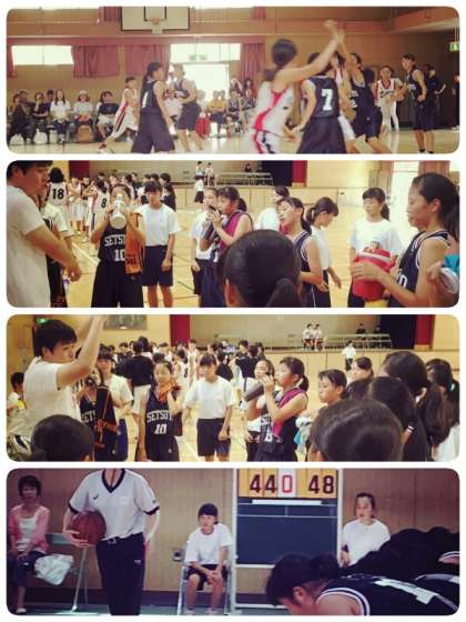 青のユニフォームの摂陽中学校は接戦が予想された下福島中学校を相手に善戦。48対44のスコアで勝利し、4回戦に駒を進めました。