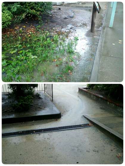 ビオトープの池もどこまでが池なのか分からないほどに水が溢れています。