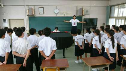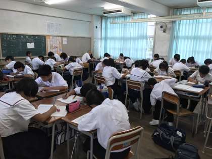6時間目、1年生は、モザイクアート制作と音楽室での合唱の練習に取り組みました。
