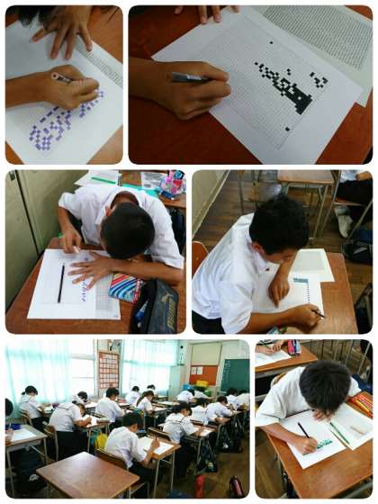 1・2組は教室でモザイクアートの制作に取り組みました。