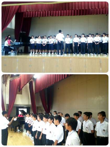 体育館の舞台や教室で合唱の練習をするクラスもありました。
