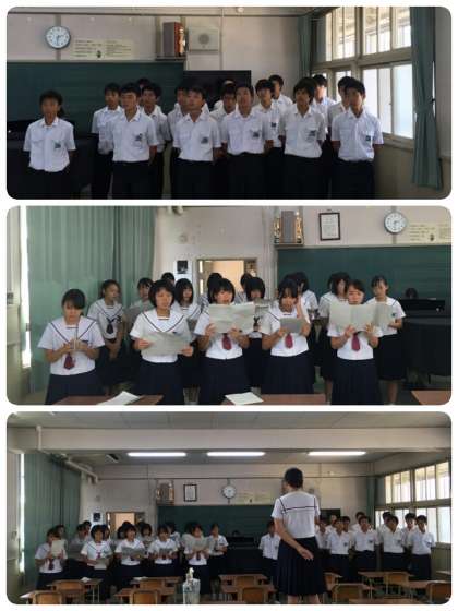 6時間目音楽室で、順番に合唱の練習を行いました。