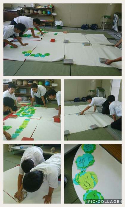 文化祭に向けて生徒会のモニュメントを制作中です。全校生徒の合作となります。さて、どんな仕上がりになるのでしょうか。当日をお楽しみに〜・・・
