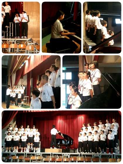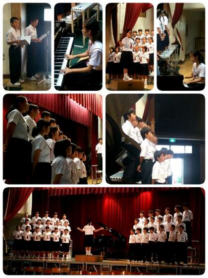 まずは先日の合唱コンクールで優秀賞となった3組と最優秀賞となった2組が自由曲を歌いました。