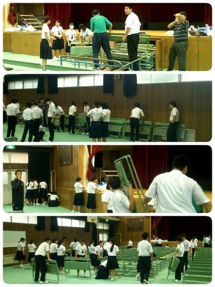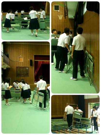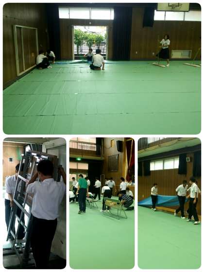 明日のために体育館準備は2年生が担当しました。