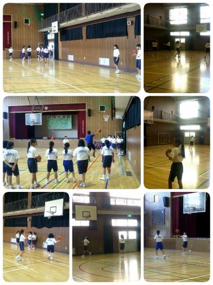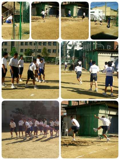 5組体育の様子です。男子はグラウンドで走り幅跳び、女子は体育館でバスケットボールでした。