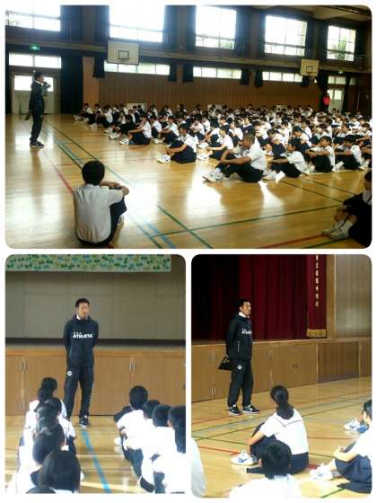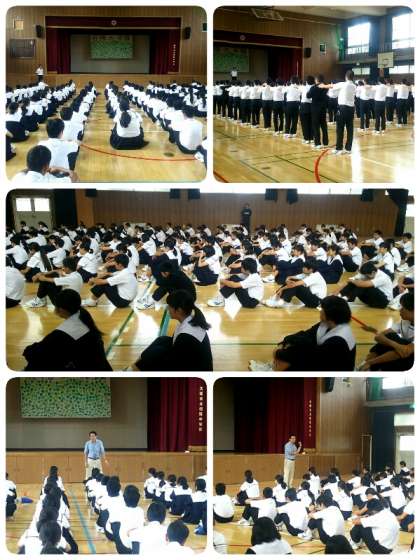足立先生からは職場体験に向けて「最近のみんなの様子を見ていると大丈夫かな?と思うことがあります。身だしなみであったり、言葉使いであったり、1年生の時にできていたことが雑になってきているように思います。中学生のみんなに仕事の楽しさを教えてあげようと思ってくれている事業所の方もいます。気持ち良く対応してもらえるように、きちんとした振る舞いを心がけてください。」という話がありました。