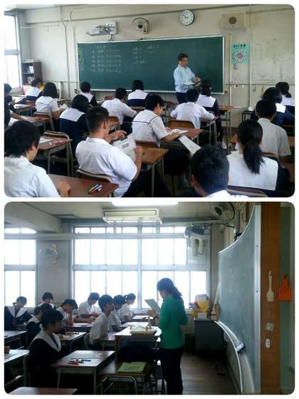 問題用紙と解答用紙が配布され、テスト開始直前の様子です。