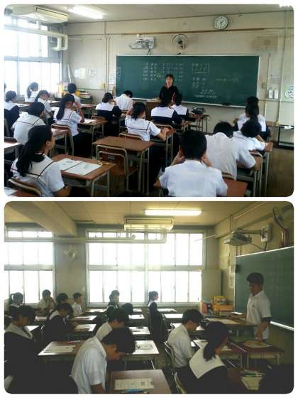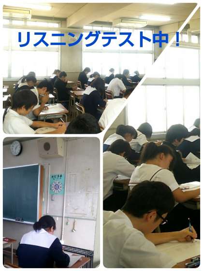 昼食をはさみ、残すところ英語のテストだけとなりました。上は最後の45分に向けて集中力を高めている様子、下は開始早々リスニングテストでスピーカーに耳を傾けている様子です。