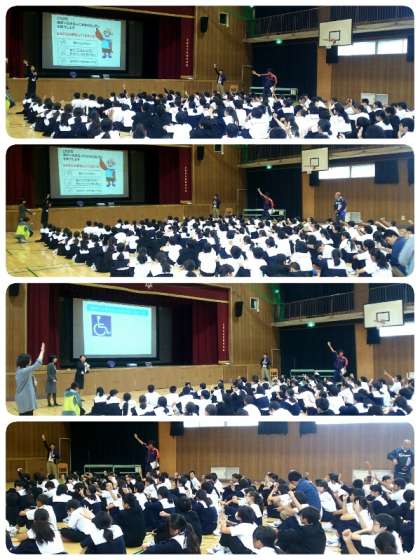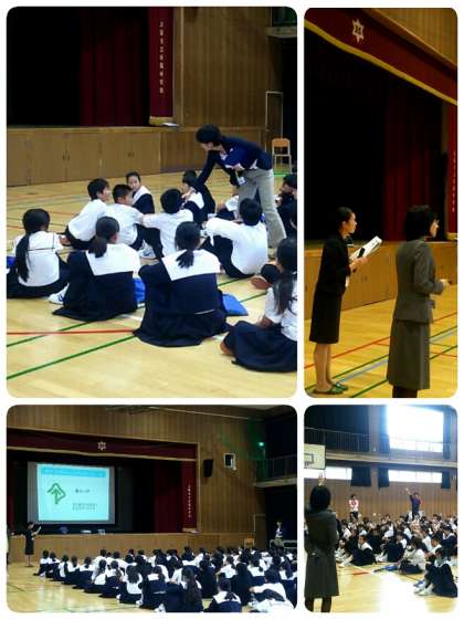 5時間目、1年生は体育館で昨日に続きキャリア教育体験学習に取り組みました。