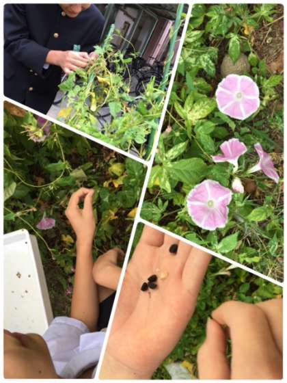そして、大きな花を咲かせてくれた「ひまわり」の種と、今も少し咲き続けてくれている「あさがお」の種も収穫しました。