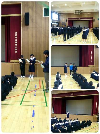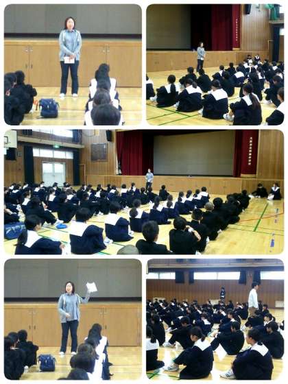 本日は1年生定例の学年集会でした。