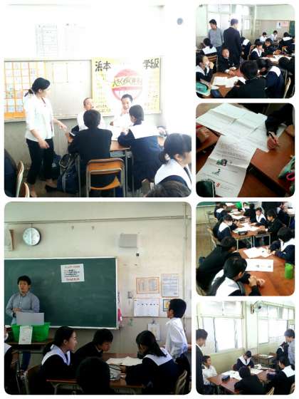 まずはワークシートに描かれた絵を基に、「どんなことに困っているんだろう」「自分たちに何ができるのだろう」「大切なことは」等について班で意見交換し、発表しました。
