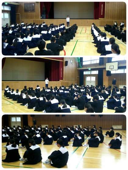 北田先生からは「委員長の人たちが前に立って、先生たちに何も言われなくても集会ができるようになってきました。今日は雨が降ってて、集会の開始に間に合わない人がいたのでその辺は残念ですが。」という話がありました。
