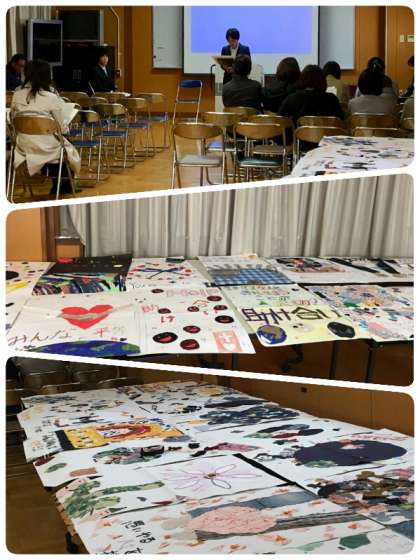 これまでの取り組みの様子や明日の大和川ウォーキングについて、また、キャリア体験学習で作成した作品を展示し,見ていただきました。