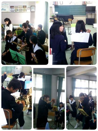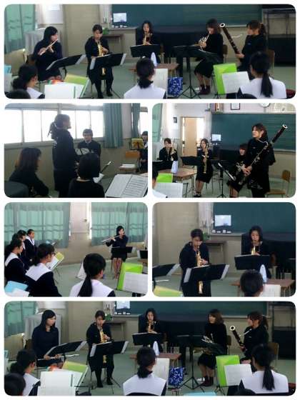 午前中の芸術鑑賞会で素晴らしい演奏を披露してくださった「池田クレモナ・モダンタンゴ五重奏団」のみなさんですが、何と午後からは吹奏楽部の人たちにレッスンをしてくださいました。