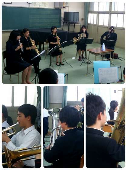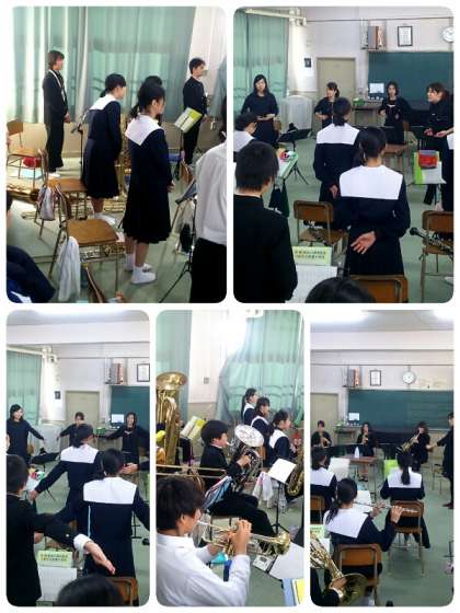 各楽器のセッティングの確認に始まり、午前中に演奏してくださった曲から音楽の構造について教えてくださったり、息を吸う、吐くの動作の確認やメトロノームの使い方などの基礎的な内容から短い音型を用いたコールアンドレスポンスなど約1時間30分のレッスンでしたが、普段の合奏中よりもメモをたくさん取る姿が目立ちました。