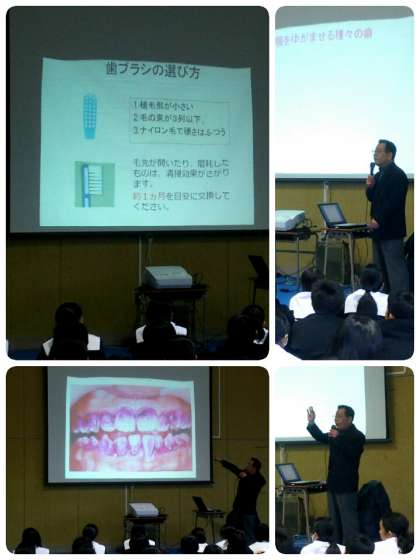 6時間目、本校の歯科校医先生に来ていただき、1年生を対象に「歯と口の健康教室」をしていただきました。