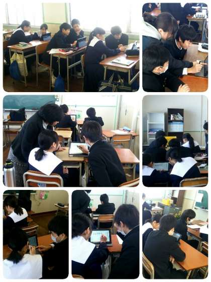 その後、机を合わせてペアをつくり、二人で1台のタブレットを使いながらさらに深めていきました。机を合わせるときに「お願いします!」と声を掛け合っているペアもいました。何か清々しかったです。