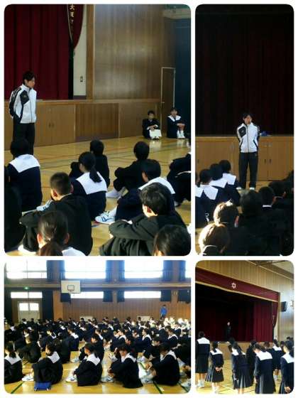 北田先生からはもうすぐ2学期の終業式を迎えるにあたり、「先日、歯科医の先生から姿勢のことについて話がありましたが、夏休み後の2学期の始業式では三学年が並んでいる様子を比べてみると1年生が一番フラフラしている人が多かったです。でも、それから数か月が経ち成長した部分もあるので、終業式ではきちんとした姿勢で臨めるようにしてください。」という話がありました。