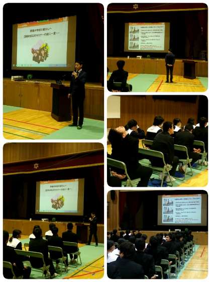 制服は「単に正しく着るのが規則だから」ということではなく、そもそも制服はオフィシャルウェアであり、きちんと着こなすものであるということを色々な例を示しながらお話しいただきました。また、人の第一印象は「6秒で決まる!」という話や面接での注意点についてもわかりやすくお話いただきました。