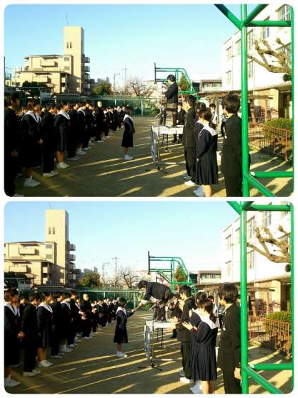先日、東住吉納税協会で「税についての作文」の表彰式並びに感謝状贈呈式がありましたが、3年生の女子1名が「公益財団法人東住吉納税協会長賞」をいただき、その伝達表彰を行いました。