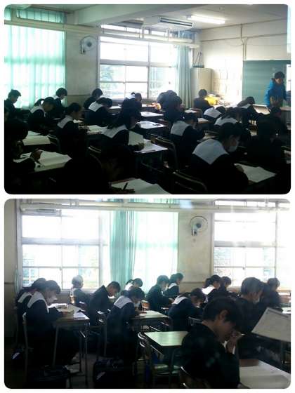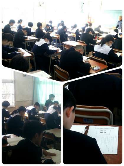 1年生にとっては初めての経験です。解答用紙を1枚ずつ切り取って使ったり、マークを塗りつぶしたり、普段の学校の定期テストとは違う要領となりますが、無事テストを開始しました。今回は国語、数学、英語の3教科のテストとなります。最後まで丁寧に取り組んでほしいです。
