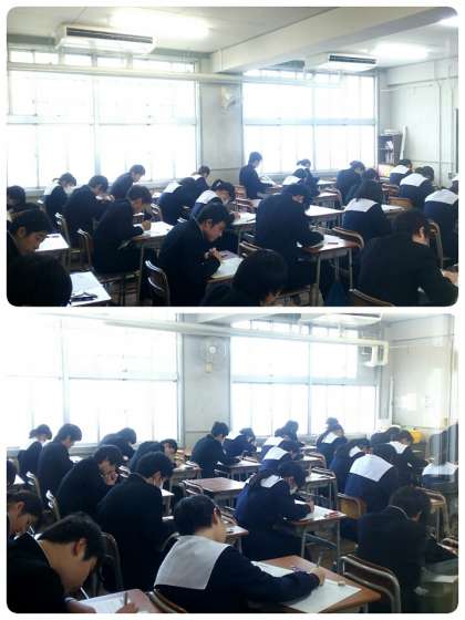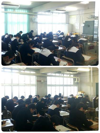 3年生は昨日に続き実力テストの二日目です。本日は英語、理科、社会に取り組んでいます。再来週には学年末テストがありますが、今後は出願書類の用意等、入試に向けての準備にも忙しくなっていきます。