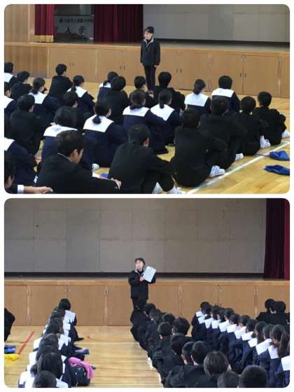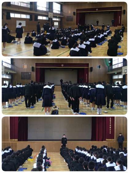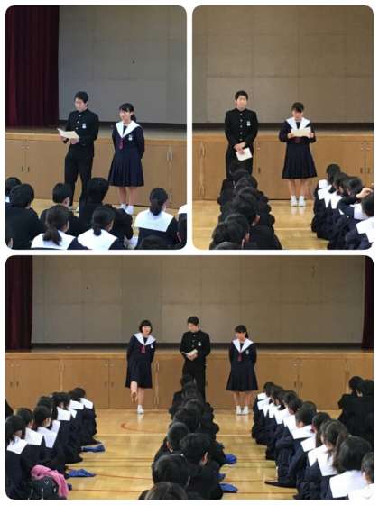 委員長会からは今日の予定の確認あり、前回の学年集会でみんなに紹介してくれた緊張しない方法のおさらいがありました。さらに別の委員長も他の緊張をしない方法を調べてきてくれて、それをみんに紹介しました。