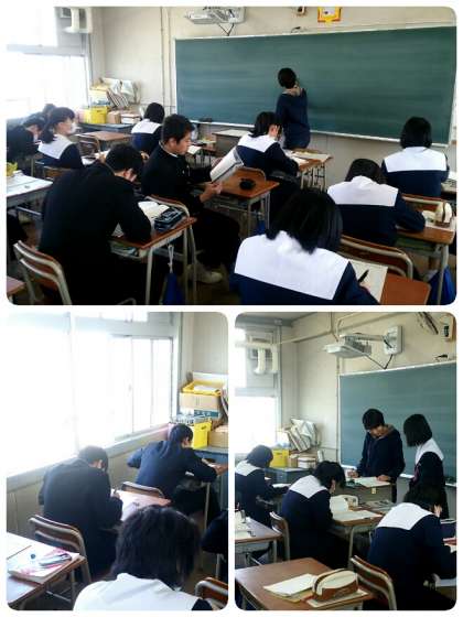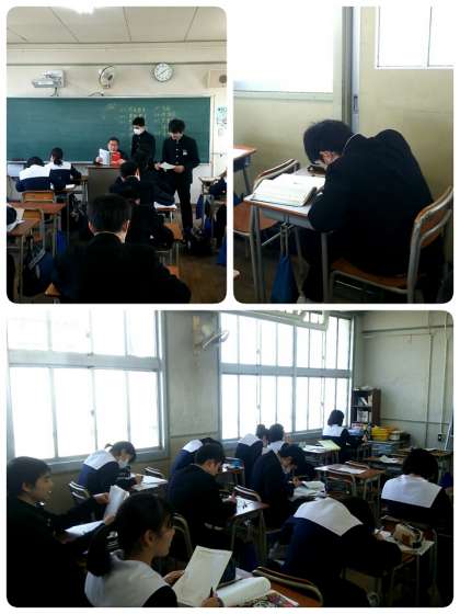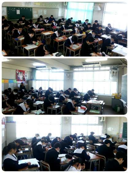 3年生の各クラスを順番に回ると各教科ともプリントで復習をしたり、各高等学校の過去問をする姿がありました。