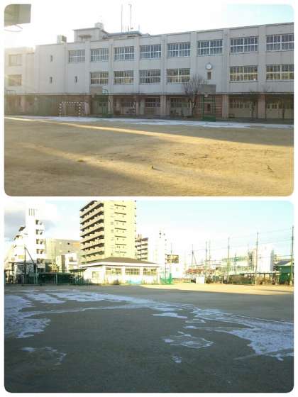 本日から2年生も登校してきました。グラウンドや中庭の陽が当たりにくい所には今日も雪が凍った状態で残っていました。