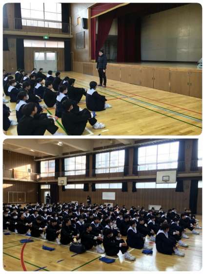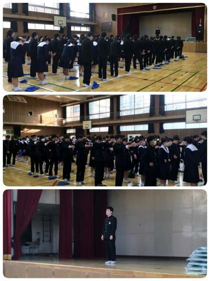 萱村先生からは、私立入試が終わり、専願合格者の人は進路が決定したことになりますが、これで終わったと気を抜いてしまうのではなく、与えられた課題等をしっかりとこなして高校入学後に備えてほしいということと卒業式に向けての話がありました。