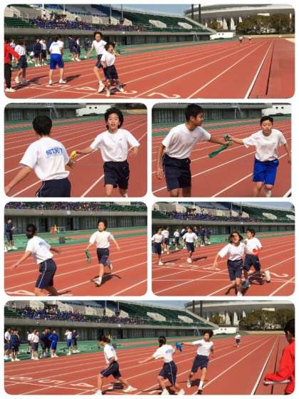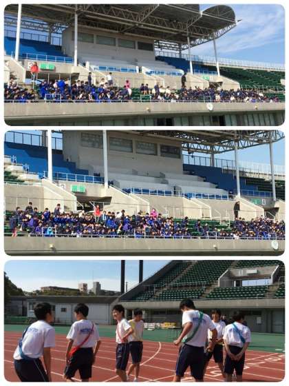 マラソンの部を終えた人達からの声援を背に、駅伝の部、スタートです。