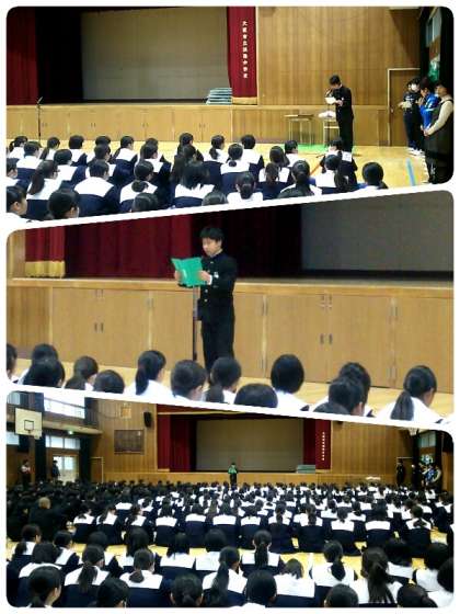昨日は雨天のため、全校集会は体育館で行われました。