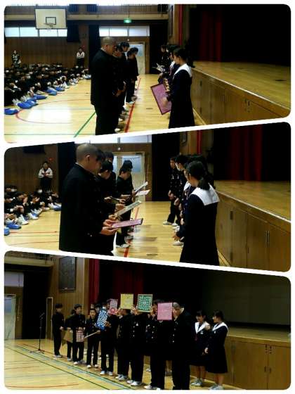 3年生から1・2年生には、後輩へのメッセージをまとめたフレームが贈られました。
