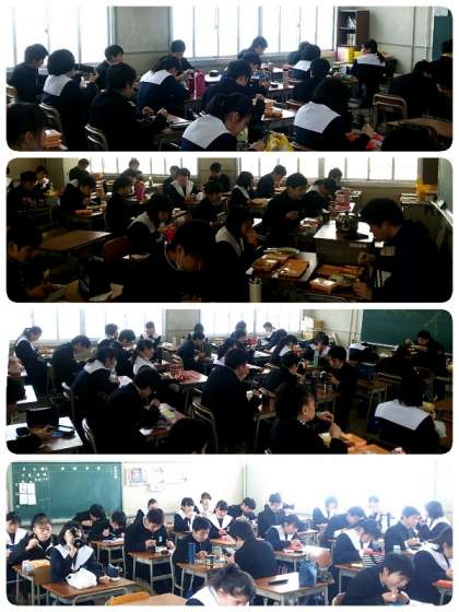 3年生は明日から卒業式の練習に入ります。みんなで食べたお昼ごはん、このワンシーンも心の中の卒業アルバムにそっと収めておきましょう。