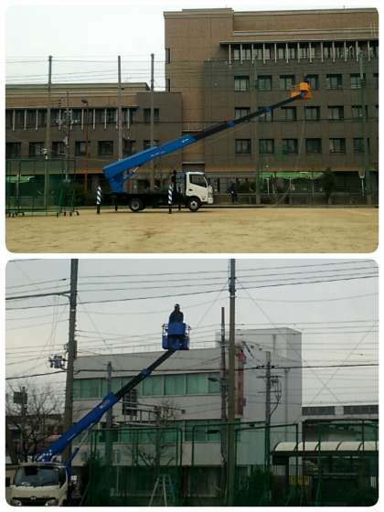 昨日、北グラウンドの南港通りに面した西側半面の防球ネットの付け替え工事がおこなわれました。穴が何か所が開いていて、そこからボールが南港通りを通行する人や車に当たってしまっては大変なので、これで一安心です。