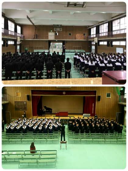 証書授与や式の流れの確認の後は、式歌の練習を行いました。