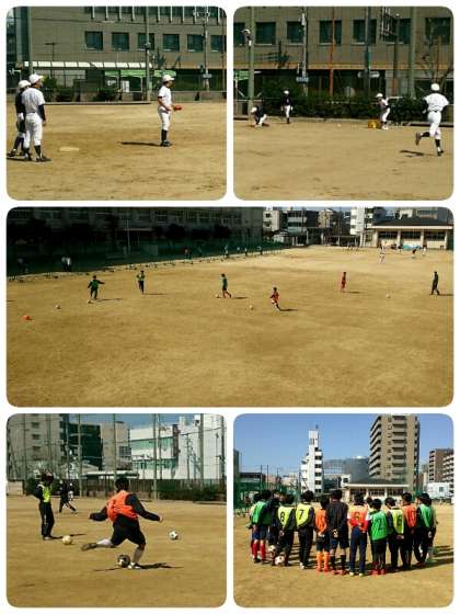 休日はどのクラブも平日の練習ではなかなかできないメニューをこなしたいものです。しかし、卒業式前ということで普段体育館を使って活動するクラブは活動場所がかなり制限されてしまいます。そこで、運動部の顧問の先生方で相談をして、北グラウンドを分け合って活動をしました。午前中は野球部、サッカー部の他に普段中庭や体育館で活動している男女バスケットボール部、男女バレーボール部が練習をしました。
