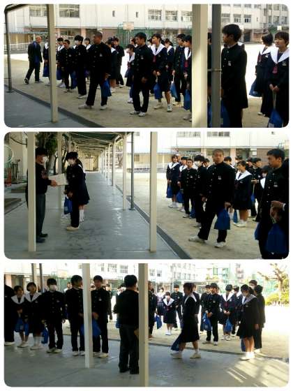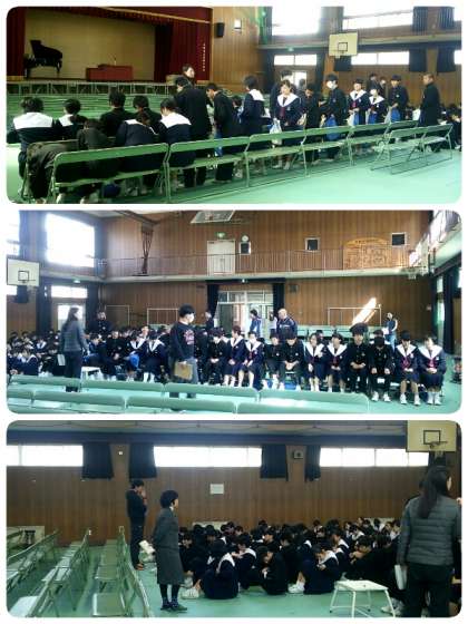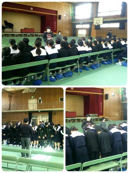 明日の卒業式並びに予行に参列する在校生代表の人たちも体育館に集合しました。起立、着席のタイミング、お辞儀の仕方などの説明を受けました。