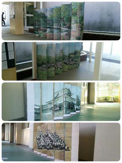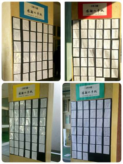 これまでの文化祭で作成したモザイクアートと保護者の方にあてて書いたお手紙も式場の体育館の前に貼り出されました。
