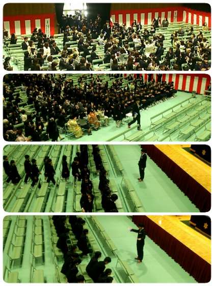 9時50分、卒業生が入場してきました。 1組萱村学級入場!