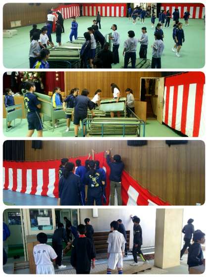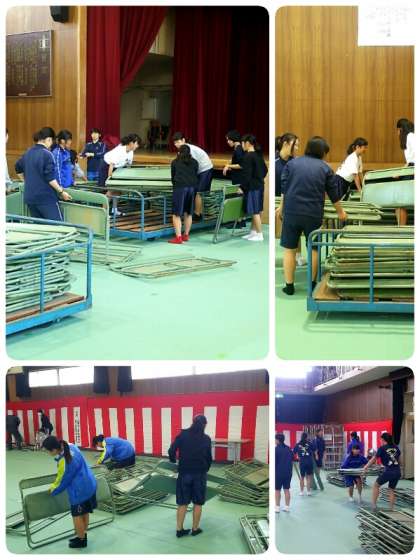 卒業式の式場撤去や清掃は登校してきた運動部の人たちが担当してくれました。