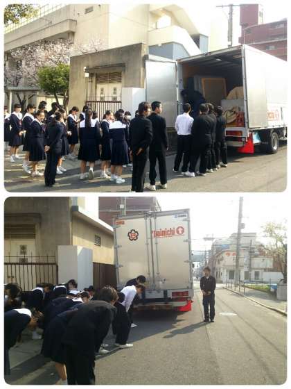 吹奏楽部は本日18時からの定期演奏会に向けて、平野区民ホールに出発しました。