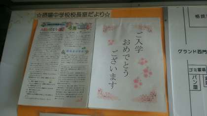 中学校、ご入学おめでとうございます。